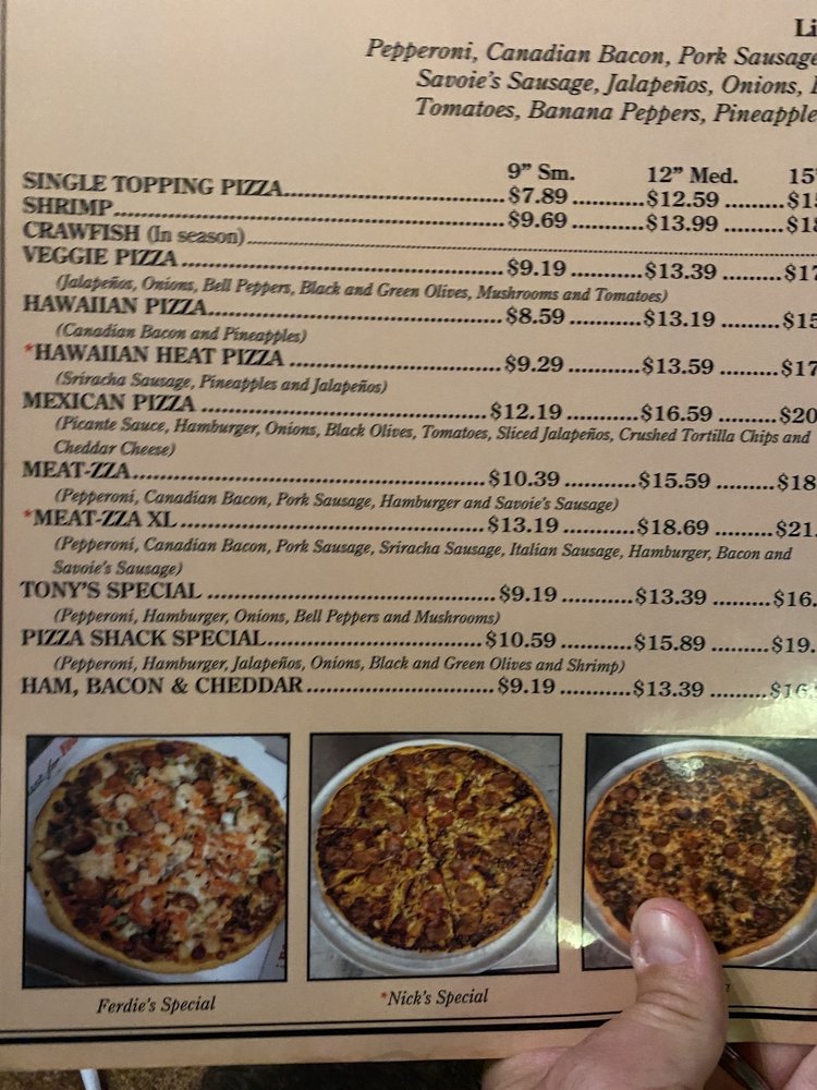 Pizza Shack, located in Opelousas, LA, offers a cozy and chill atmosphere that's perfect for groups and families. Their menu boasts a variety of delicious pizzas, with options like Hawaiian and their signature Pizza Shack special. Customers rave about the cheesy garlic breadsticks as a must-try starter. The attentive staff ensures a top-notch dining experience, with frosty beer mugs and prompt service. The restaurant also offers outdoor seating, waiter service, and Wi-Fi, catering to a diverse range of dining preferences. Reviews highlight the piping hot pizzas, friendly staff, and inviting ambiance, making Pizza Shack a highly recommended spot for pizza lovers. Next time you're craving a satisfying slice, be sure to visit Pizza Shack for a memorable dining experience.